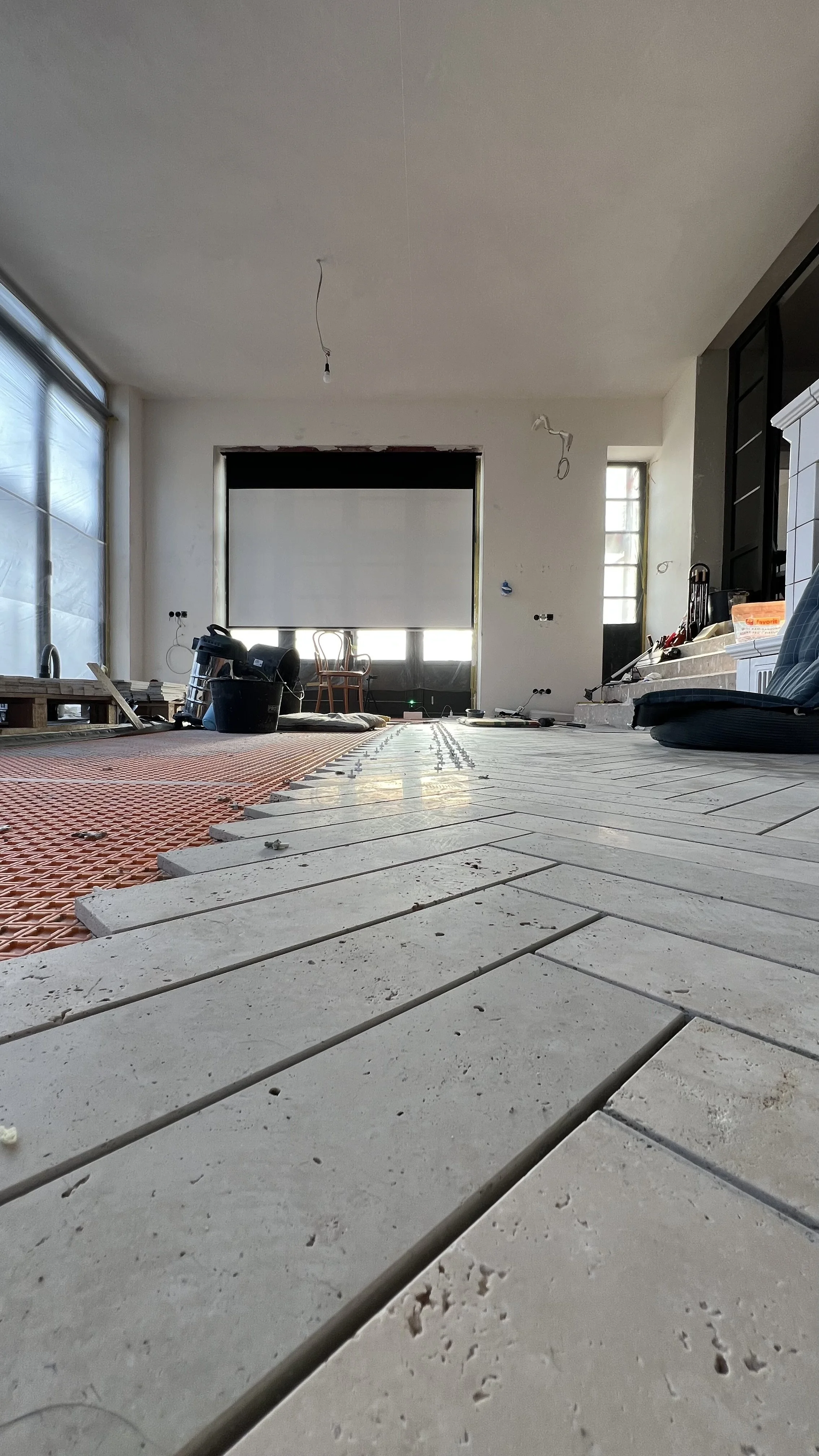In unserem Wintergarten, der das Herz unseres Zuhauses wird, fehlen noch genau 1.000 Fliesen, bis der Raum endlich fertig ist. Jede einzelne davon wird Teil unseres Alltags sein. Hier trinken wir unseren Morgenkaffee, hier schwelgen wir mit unseren Freunden in Erinnerungen und schaffen gleichzeitig neue, hier machen unsere Hunde Siesta vor’m Kachelkamin und wer weiß, vielleicht toben hier auch irgendwann unsere Kinder. Die Vorstellung allein macht uns schon ziemlich glücklich, aber irgendwie möchten wir diesen Ort zu etwas ganz Einzigartigem machen.